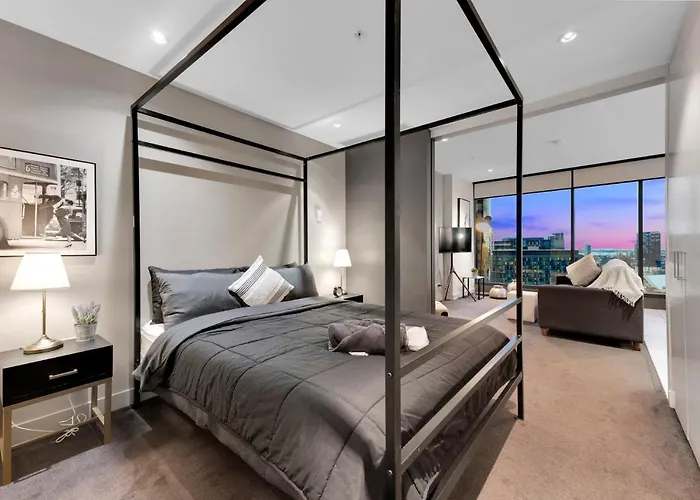 Doté d'équipements indépendants tels qu'une cuisine complète, cet immeuble garantit aux clients un coin repas pour prendre leurs repas. L'aéroport d'Essendon est à une distance de 19 minutes en voiture, et l'arrêt de bus Flinders Street est à quelques instants de ces propriétés Opulent Level 25 Condo With Breathtaking Views.